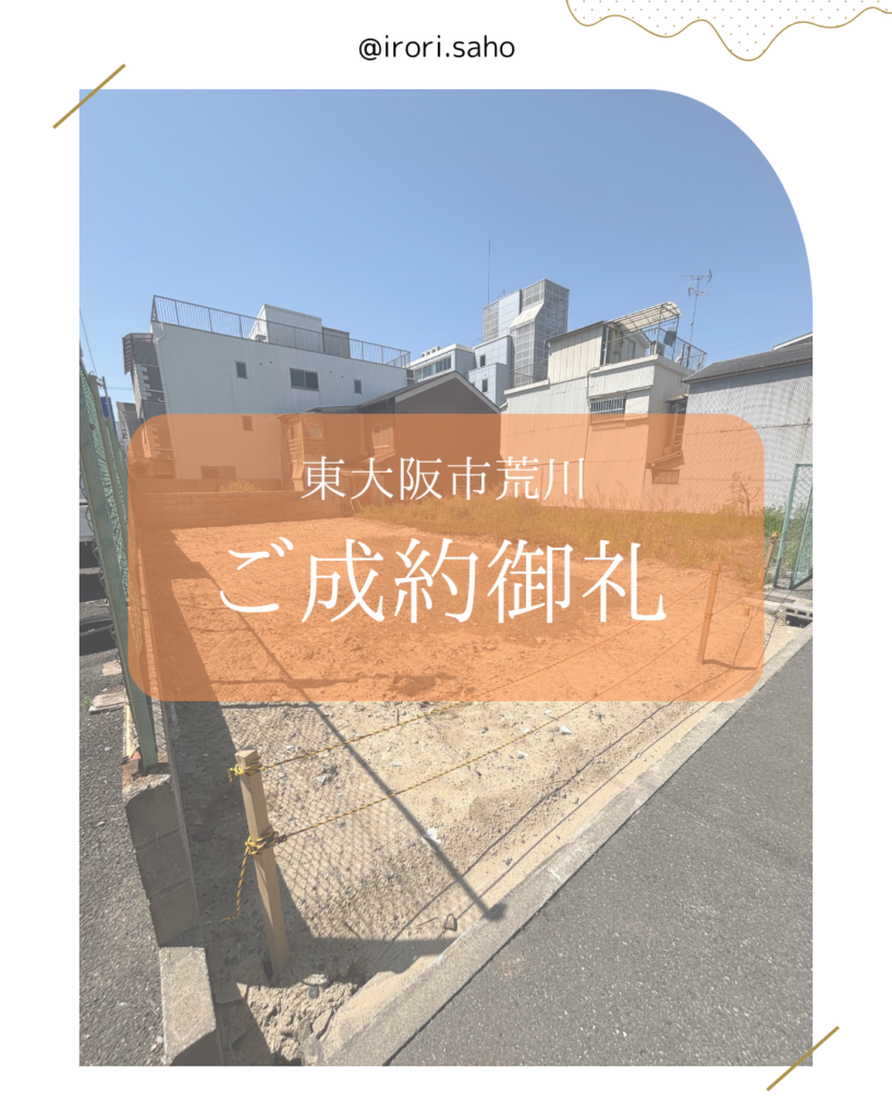 東大阪市荒川3丁目 建築条件付土地はご購入成約いたしました。
